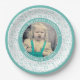75 Your Photo Random Number Pattern Teal/White Paper Plate
