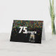 Fun confetti with white text and champagne flute toast for 75th anniversary on black.