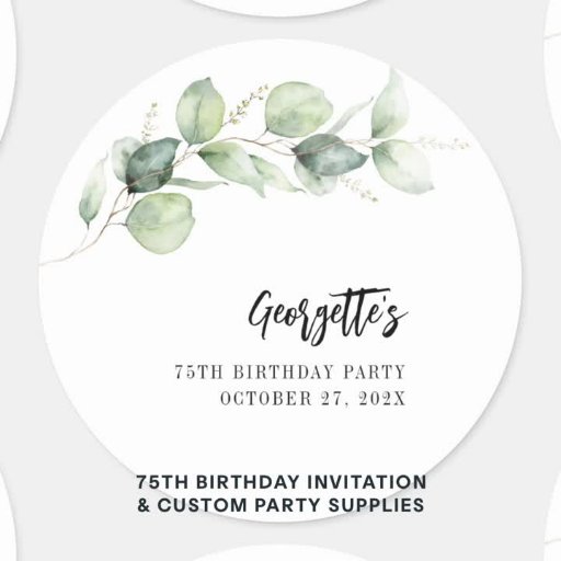 75th Birthday Eucalyptus Invitation Party SuppliesDesigned by S A Holmes