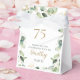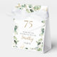 These exquisite, watercolor eucalyptus with gold leaf embellishments and gold splattered dots 75th birthday party thank you favour boxes are perfect for your big celebration. Their soft flowy design is modern yet traditional. They'll look fabulous with your party favours. Select Personalise this template to make them uniquely your own. In seconds you will see your stunning 75th birthday thank you gift boxes.