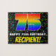 This fun and eye-catching birthday themed jigsaw puzzle design features a large number “75” having a multicolored rainbow spectrum inspired gradient pattern. It also features the message “HAPPY 75th BIRTHDAY,”, and a personalised recipient name. The background has a bold pattern of music notes with various colours and sizes. A joyful, personalised birthday puzzle like this might be a fun way to deliver birthday wishes to somebody who is celebrating their seventy-fifth birthday. These might be extra special if that person is a singer, a musician, a songwriter, a composer, or likes listening to music. [~Z0000608]