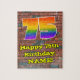 This exciting and vibrant urban street art and graffiti inspired birthday jigsaw puzzle design features a large number “75” having a colourful rainbow spectrum gradient inspired pattern. It also features the message “Happy 75th Birthday,”, and a custom name. The background features a brick wall pattern. A colourful, personalised birthday puzzle like this might be a fun way to send a birthday greeting message to somebody who is celebrating their seventy-fifth birthday. [~Z0000545]