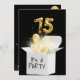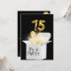 Gold balloons with sparkles and ribbons in a white box on black background for 75th birthday party.