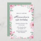 75th birthday invitations Floral Frame Pink Green elegant watercolor