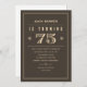 75th birthday invitations for men with a simple yet formal dark grey brown & light creme design. Uniquely personalised for any type of 75th birthday party!