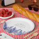 Perfect table decor for a July birthday party. Blue larkspur (delphinium) is the birth flower for that month. It forms a pretty watercolor bottom border on this floral personalised paper plate. The birthday celebrant's name, age and birthdate are placed above it using elegant calligraphy and typography. All text is editable.