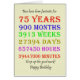 75th birthday card counting down the years, days, months, hours, and minutes. A card to give pause for thought! Leap years have been taken into account!