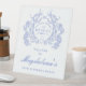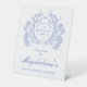 75th Birthday Party Blue Floral Crest Welcome Pedestal Sign
