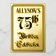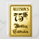 The front of this ornate and elaborate seventy-fifth birthday party/celebration foil invitation card design features the message “75th Birthday Celebration” in luxurious script-style text. It also has an editable name. The back features personalised details about the event, such as the date, time, place/venue, and any other important information. Fancy, opulent, customisable invitations like these might be used to invite guests to a birthday celebration/party being held to honour somebody’s 75th birthday. [~Z0000596]