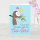 Funny 75th birthday party invitation with Come and Celebrate with this Old Bird text written on the cover. A female vulture with floral headband and wearing pearls is roosting on a flowering branch. Add your birthday event information on the inside as you like. Change the inside verse for another birthday year as needed. Art, image, and verse copyright © Shoaff Ballanger Studios, 2023.