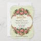 For a very special Aunt, Mother or Grandmother's birthday celebration. NOTE: THIS IS A FLAT PRINTED IMAGE, THERE ARE NO LAYERS OR REAL GOLD METALLIC GLITTER. Celebrating a very special birthday? This beautiful 75th birthday party invite is easy to customise for your event. Shown here as a surprise party, you can change the wording to reflect your special celebration. Made from vintage postcard pink roses artwork inside a golden glitter look double frame that is intertwined with the roses. A gold faux glitter oval frame in the centre features the specific birthday year of the person you are honouring. On the other side is a matching image with a garland of roses on the top and bottom with the text in a matching gold glittery look for the event. In the background is etched printer's decorative ornament swirl scrolls, antique handwriting and handwritten words for a touch of elegance. There is a complete product line available for all your wedding, shower and party needs. COLOR PALETTE: deep rose pink with blush, soft off white, sage mint green and gold metal look.