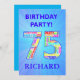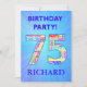 75th Birthday party invitation. Add a name and your details to make a fantastic birthday party invitation. The numbers are made from words connected with birthdays to get everyone in the mood!
