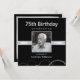 Casual yet classy modern Silver and Black 75th Birthday Dinner Party Invitations for men or women with OR without photo -- Add your photo and customise the name, date, and details to create your own unique personalised party Photo invitations. No photo -- no problem, just click "Clear Image" and you still have a beautiful personalised invitation ready to go "as is." Easily customised for any special occasion -- retirement party, cocktail party, holiday party, new years party, bachelor party, corporate or charity events -- just click "Customise It" to change the details to suit your special milestone celebration -- 21st, 30th, 40th, 45th, 50th, 55th, 60th, 65th, 70th, 75th, 80th, 85th, 90th, 95th, 100th. **NOTE: Sized for 5.25 x 5.25 SQUARE invitation cards -- other sizes and styles available in gallery.