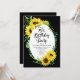 Classy and stylishly modern sunny sunflowers and eucalyptus greenery frame design "75th Birthday Party" on an editable black background. Back features a coordinating sunflower bouquet also on an editable black background.