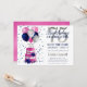 This fabulous 75th birthday save the date card featuring a 2-layer pink and silver cake with blue roses and pink, navy blue and silver balloons, the number 75 in silver and shiny blue confetti would be perfect for celebrating your loved one turning 75. It is traditional and classic while being fresh, modern and contemporary. The back is a coordinating pink foil.