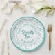 75th Birthday Random Number Pattern Teal/White Paper Plate