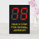 The front of this silly and nerdy birthday greeting card design features a large number "75" with a red seven segment digital display inspired appearance, along with the message "Have a Great 75th Birthday," and a personalised name, on a black coloured background. The inside features an editable birthday greeting message, or could perhaps be cleared and left blank if a message is to be written by hand instead. A customisable birthday card like this might be a fun way to send a message in celebration of somebody’s seventy fifth birthday. [~Z0000386]