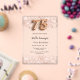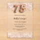 A modern, stylish and glamourous invitation for a 75th birthday party. A clear, transparent background with rose gold confetti. The name is written with a modern hand lettered style script. Personalise and add your party details. Number 75 is written with a balloon style font, script.