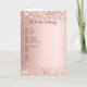 A gold gradient background with faux glitter. The name is written with a modern dark rose gold coloured hand lettered style script. Number 75 is written with a balloon style font, script. Welcome text, photo, program and a biography on the back.