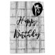 A symmetrical pattern features vertical and horizontal wooden panels with a worn, rustic appearance, showcasing a faded white finish with a black balloon for a 75th birthday.