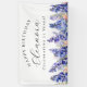 Elegant summer watercolor blue larkspur flowers create a beautiful floral border at the bottom of this happy birthday banner. Larkspur or delphinium flowers are the July birth flower. A trendy font combination gives it a modern aesthetic. All of the text is editable.