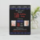 Surprise him on his 75th with a surprise birthday party. This modern tag invite in black features a photo from childhood and a picture from adulthood on either side of the invite details. The words SURPRISE and PARTY appear prominently along the top of the invite and the word SHHH appears along the bottom so party guests are sure to know it is a surprise party. Copyright henishouseofpaper