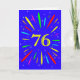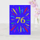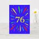 An explosive 76th birthday card! What a wonderful way to send birthday greetings. The number 76 in bright yellow with an explosion of bright colours and stars.