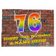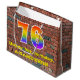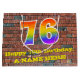 This fun and vibrant birthday-themed gift bag design, inspired by graffiti and street art, features a large number "76" having a rainbow spectrum gradient inspired pattern. It also features the message "Happy 76th Birthday,", and a custom name. The background features a brick wall style pattern. A colourful gift bag like this might be used when wrapping presents being given to somebody in celebration of their seventy sixth birthday. [~Z0000522]