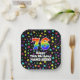 This vibrant and exciting birthday-themed paper plate design features a large number “76” having a rainbow spectrum gradient inspired pattern. It also features the message “Happy 76th Birthday,”, and a personalised name. The background features a multicolored pattern featuring many star shapes with different colours and sizes. Birthday themed paper plates like this might be used at a party celebrating somebody’s seventy sixth birthday. [~Z0000582]