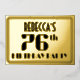 The front of this Roaring Twenties era inspired seventy-sixth birthday celebration/party foil invitation card design features a customisable name, an art deco look inspired number “76th”, the message “BIRTHDAY PARTY”, and a multi-line border. The back features personalised details about the event, such as the date, time, place/venue, and any other important information. Luxurious, stylish, customised invitations like these might be used to invite guests to a birthday party/gathering being held in celebration of somebody’s 76th birthday. [~Z0000606]