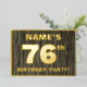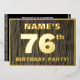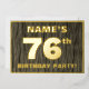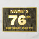 The front of this bold seventy-sixth birthday celebration/party foil invitation card features an editable name, a large number “76th”, the message “BIRTHDAY PARTY!”, and a border, all in foil. The background of the front features a rustic, yet sophisticated, faux wood grain look inspired pattern. The back features personalised details about the event, such as the date, time, place, and any other relevant information. Customisable invitations like these might be used to invite attendees to a birthday party being held to honour somebody’s 76th birthday. [~Z0000598]