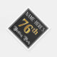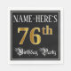 This fancy and ornate birthday paper napkin design features an editable name and the message “76th Birthday Party”. The large number “76th” has an imitation/faux gold-inspired colouring pattern, the words “Birthday Party” are in opulent script-style text, and the background is coloured black by default (although it can be customised). Luxurious, opulent paper napkins like this might be useful at a birthday celebration/party being held in celebration of somebody’s seventy sixth birthday. [~Z0000565]