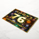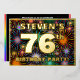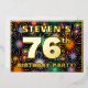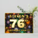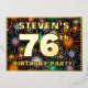 The front of this exciting seventy-sixth birthday party foil invitation card design features a personalised name, a large number “76th”, the message “BIRTHDAY PARTY!”, and a border. The background of the front features an eye-catching, colourful pattern inspired by bursting celebratory fireworks. The back features personalised details about the event, such as the date, time, place/venue, and any other information that may be useful. Customisable invitations like these might be a fun way to invite guests/attendees to a birthday party being held to celebrate somebody’s 76th birthday. [~Z0000602]