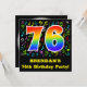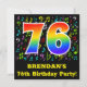 The front of this fun, vibrant, and exciting birthday party invitation design features a large number "76" having a rainbow spectrum gradient inspired pattern. It also features an editable name and the message "76th Birthday Party!". Part of the background has a fun pattern of various music notes and symbols having a variety of colours and sizes. The back features customised information/details pertaining to the event that the potential guests are being invited to. Happy, customised birthday celebration invitation cards like this might be sent to potential guests of a gathering being held to honour a song composer’s, a singer’s, a musician’s, or somebody else’s seventy sixth birthday. [~Z0000427]