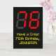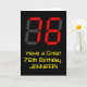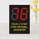 The front of this fun and nerdy birthday-themed greeting card design features a large number "76" with a red seven segment digital display style appearance, along with the message "Have a Great 76th Birthday," and a personalised name, on a black coloured background. The inside features a personalised birthday greeting message, or could perhaps be cleared and left blank if a message is to be written by hand instead. A personalised birthday card like this might be a fun way to send a message in celebration of somebody’s seventy sixth birthday. [~Z0000386]