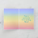 This joyful and upbeat birthday greeting card design features a cartoon-style depiction of a three-tier birthday cake having numeral-shaped candles on top showing the number “77“, along with the message “HAPPY 77TH BIRTHDAY,”, and an editable recipient name. The background of the front has a multicolored pastel rainbow spectrum inspired gradient pattern. The inside has an editable birthday greeting message, or could perhaps be cleared and left blank if a message is to be written by hand instead. A cheerful, editable birthday greeting card like this might be a fun way to deliver birthday greetings to somebody who is celebrating their seventy-seventh birthday. [~Z0000625]