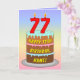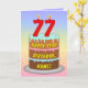 77th Birthday — Fun Cake & Candles, w/ Custom Name Card