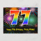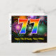 77th Birthday – Fun Fireworks Pattern + Rainbow 77 Postcard