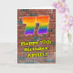 This vibrant and fun urban street art and graffiti themed birthday greeting card design features a large number “77” with a multicolored rainbow spectrum gradient inspired pattern, along with the message “Happy 77th Birthday,”, and a personalised name. The background of the front has a brick wall pattern. The inside features an editable birthday greeting message, or could perhaps be cleared and left blank if a message is to be written by hand instead. A vibrant, customised birthday greeting card like this might be a fun way to send a birthday greeting message to somebody who is celebrating their seventy-seventh birthday. [~Z0000586]