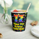 This cheerful and exciting birthday themed paper cup design features a large number “77” with a rainbow spectrum gradient inspired pattern, along with the message “Happy 77th Birthday,”, and a custom name. The background features an exciting and colourful star field inspired pattern. Vibrant, colourful paper cups like this might be fun to have at a birthday celebration/party being held in celebration of somebody’s 77th birthday. [~Z0000540]