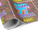 This fun birthday wrapping paper design features the message “HAPPY 77TH BIRTHDAY,” having a colourful, vibrant, graffiti-inspired look, plus an editable recipient name. The background features a brick wall inspired pattern. Birthday themed wrapping paper like this might be a fun way to wrap a gift or present being given to somebody who is celebrating their seventy seventh birthday. [~Z0000533]