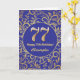 77th Birthday Navy Blue and Gold Floral Pattern Card