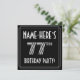 The front of this stylish and 1920s-1930s style inspired seventy-seventh birthday party/celebration invitation card design features an editable name, a fancy art deco style inspired number “77th”, the message “BIRTHDAY PARTY!”, and a border pattern consisting of lines. There is a black-coloured background on the front by default, but it can be customised to a different colour if desired. The back features personalised details about the event, such as the date, time, venue/location, and any other information that may be important. Luxurious, stylish, customisable invitations like these might be used to invite guests to a birthday party being held to honour somebody’s 77th birthday. [~Z0000615]