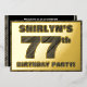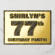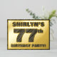 The front of this bold seventy-seventh birthday party foil invitation card features a personalised name, a large number “77th”, the message “BIRTHDAY PARTY!”, and a border, all featuring a rustic, yet elegant, faux wood grain look inspired pattern. The back features personalised details about the event, such as the date, time, place, and any other important information. Customised invitations like these might be used to invite attendees/guests to a birthday party being held to celebrate somebody’s 77th birthday. [~Z0000595]