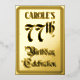 The front of this opulent seventy-seventh birthday celebration/party foil invitation/announcement card design features the message “77th Birthday Celebration” in elegant script-style text. It also has an editable name. The back features personalised details about the event, such as the date, time, venue/place, and any other relevant information. Luxurious, fancy, customisable invitations like these might be used to invite guests to a birthday party/celebration being held in celebration of somebody’s seventy-seventh birthday. [~Z0000596]