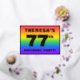 The front of this exciting and vibrant seventy-seventh birthday celebration foil invitation card design features a custom name, a large number “77th”, the message “BIRTHDAY PARTY!”, and a border. The background of the front has an eye-catching, colourful, rainbow spectrum inspired gradient pattern. The back features personalised details about the event, such as the date, time, venue/location, and any other information that may be relevant. Customised invitations like these might be a fun way to invite attendees to a birthday party being held to honour somebody’s 77th birthday. [~Z0000599]