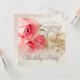 A beautiful delicate image of a rose in soft pink tones. In the background is a string of pearls. The whole effect is softened by a delicate feather. A delightful 77th birthday party invitation. Change the back to your own party details