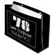 This vintage style Roaring '20s appearance inspired birthday giftbag design features a large art deco style inspired number "78", the message "Happy 78th Birthday,", a customisable name, and a border pattern consisting of thin lines. It features a black-coloured background. A gift bag like this might be used when wrapping presents being given to somebody in celebration of their 78th birthday. [~Z0000495]