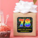 This fun, colourful, and vibrant birthday sticker design features a large number "78" with a rainbow spectrum gradient inspired pattern, along with the message "Happy 78th Birthday,", and an editable name. Part of the background features a pattern of various music notes and symbols having a variety of colours and sizes. Fun, customised birthday stickers like this might be used as a birthday party decoration, or perhaps given as a birthday present, or perhaps be used when wrapping birthday gifts being given to celebrate a musician’s, a singer’s, a song composer’s, or somebody else’s 78th birthday. [~Z0000423]