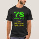 This fun and nerdy shirt design has the message "78 YEARS OLD!", the birthday greeting message "Happy 78th Birthday,", and an editable name. The upper age digits and text feature a geeky, pixelated, green, 8-bit graphics style look inspired by that of classic video games and vintage computer games. The lower greeting message features a nerdy, yellow, vintage digital computing inspired appearance. Shirts like this might be worn by the attendees at a birthday party being held to celebrate the seventy-eighth birthday of somebody who likes classic video gaming or vintage computers. [~Z0000455]